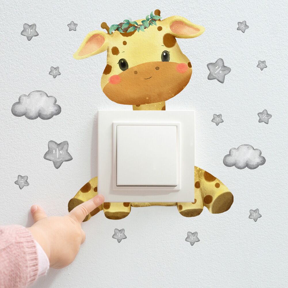 Transform your child’s bedroom with these Cute Giraffe, Bear, Elephant, and Star Switch Stickers. These charming, self-adhesive wall decals are perfect for adding a touch of whimsy and fun to any space. Designed with delightful animal and star motifs, they are ideal for decorating light switches, walls, and other smooth surfaces. Easy to apply and remove, these stickers are a great way to personalize your kid’s bedroom, nursery, or playroom without any fuss. Enhance your home decor with these playful and colorful decals that will bring joy and creativity to your child’s environment.