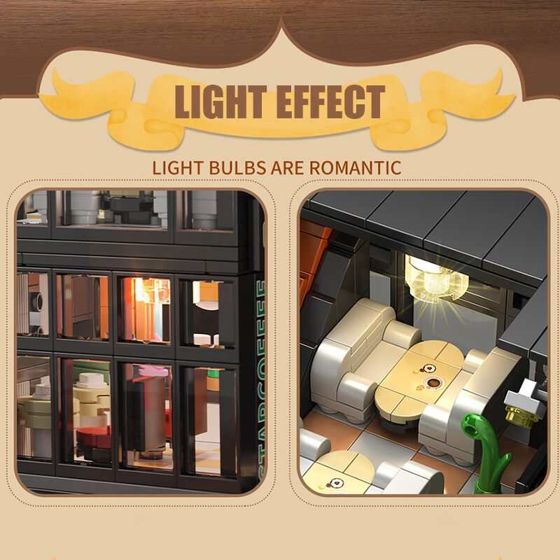 Bring your coffee shop vision to life with the Star Coffee House with Lights Building Blocks Set, a delightful addition to any modular city street view collection!